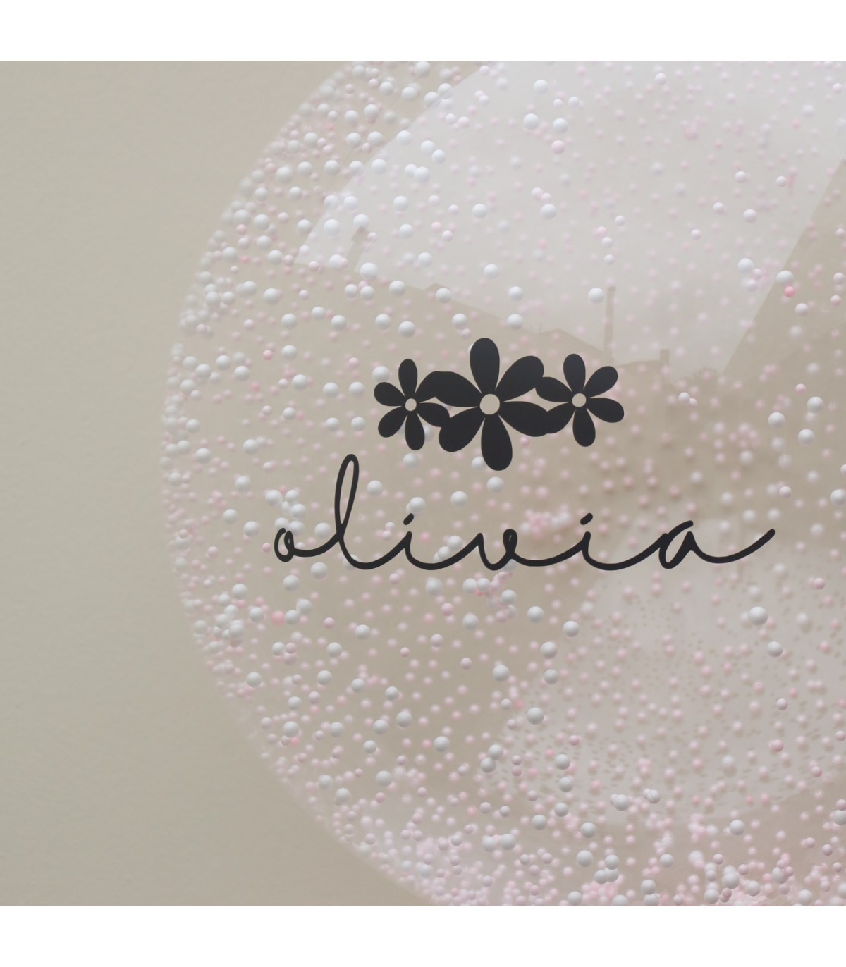 Globo burbuja n24 personalizado, corazón metálico n18 y dos látex n12. Inflados con gas helio.