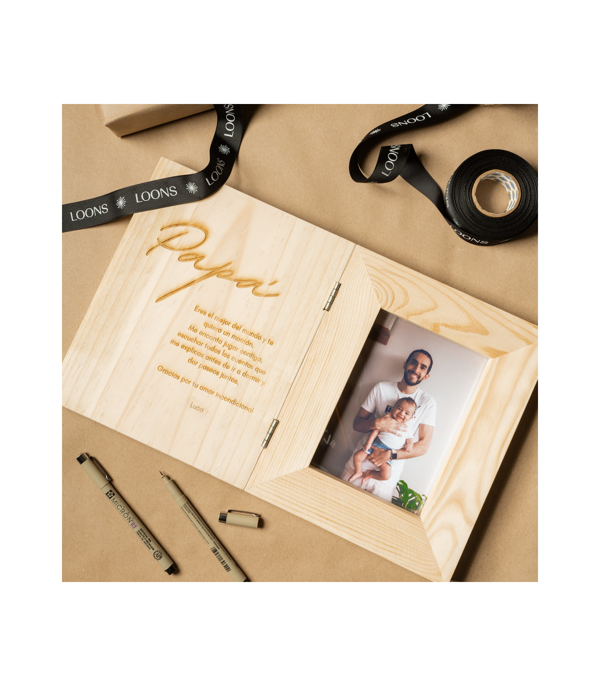 Cuadro de madera grabado a láser con foto 12.5x17 cm