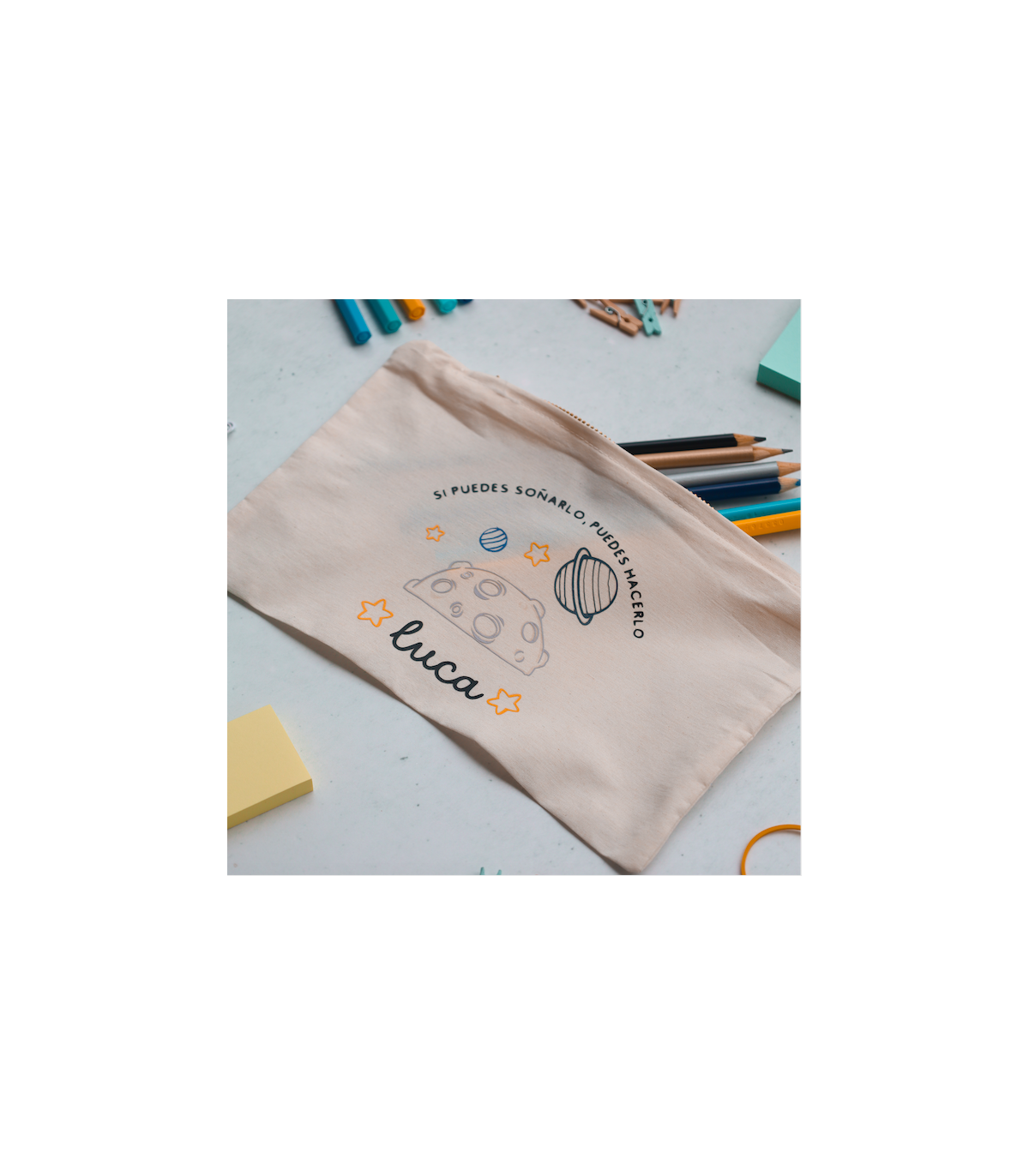 Bolsa de tocuyo 30x40cm personalizado, neceser de tocuyo 15x24cm personalizado, regla de 15cm personalizado, tumbler personalizado con tapa de bambú y cañita y tarjeta.