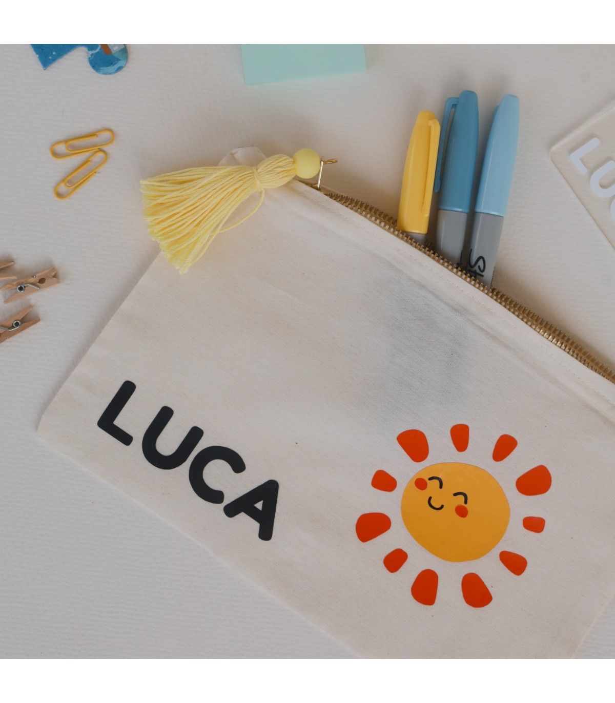 Neceser de tocuyo 15x24cm personalizado y tarjeta.